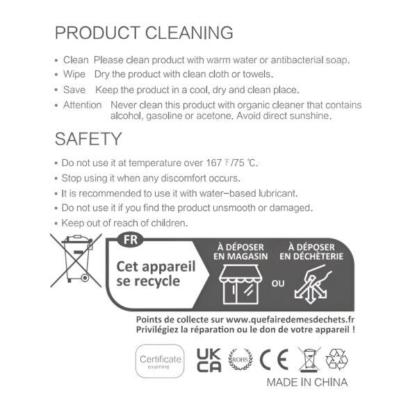 - שטיפה עדינה במים פושרים + סבון עדין/נוזל ייעודי לצעצועים אינטימיים.