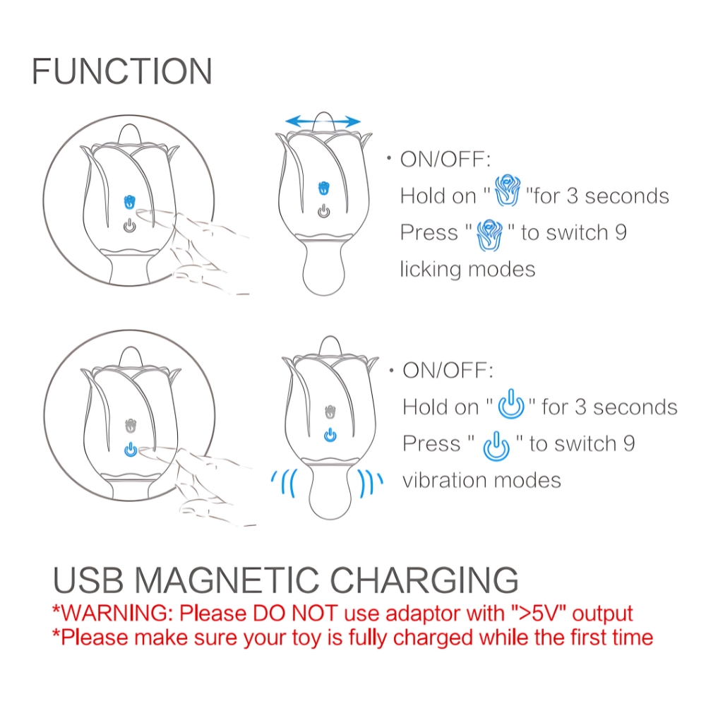 - בחירת עוצמה/מצב: לחיצה קצרה תעביר בין מצבי גירוי ועוצמות. התקדמי בקצב נוח לך.